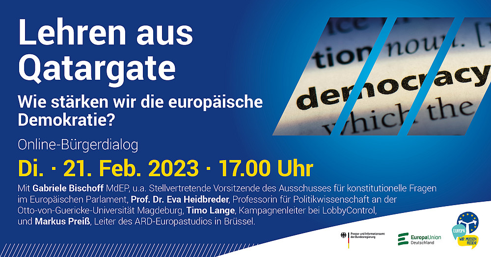 Online-Bürgerdialog „Lehren aus Qatargate – Wie stärken wir die europäische Demokratie?“ am 21. Februar 2023
