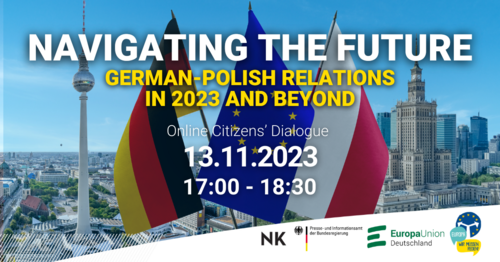 Wie geht es weiter mit den Deutsch-Polnischen Beziehungen nach der Wahl in Polen? Dieser Frage widmen wir uns in unserem nächsten Online-Bürgerdialog "Navigating the future - German-Polish relations in 2023 and beyond" am 13. November 2023 von 17 Uhr bis 18:30 Uhr. Schalten Sie sich ein und diskutieren Sie mit Dietmar Nietan, Aleksandra Rybińska-Wróbel und Jarosław Bajaczyk.